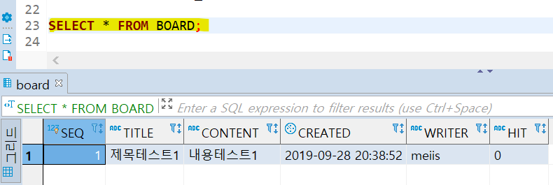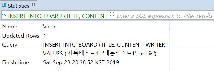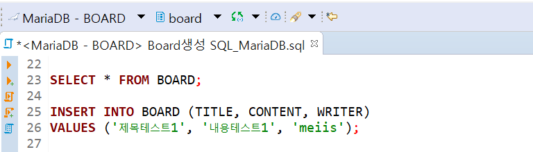 3) 생성된 BOARD 테이블에 데이터 INSERT