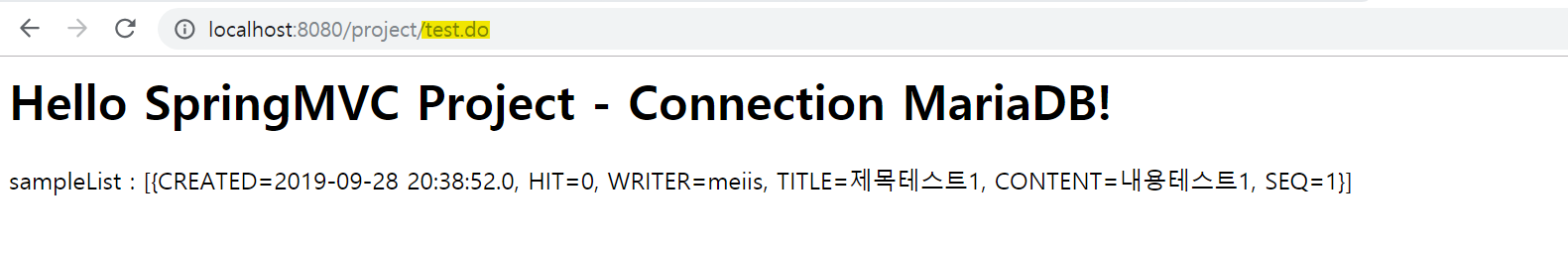 # SprinMVC 프로젝트에서 DB 조회로 연결 테스트