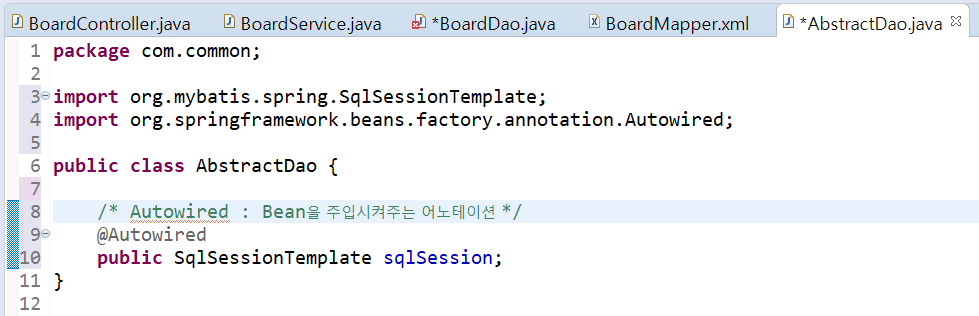 3) AbstractDao 에 sqlSession 전역변수를 만들어주고