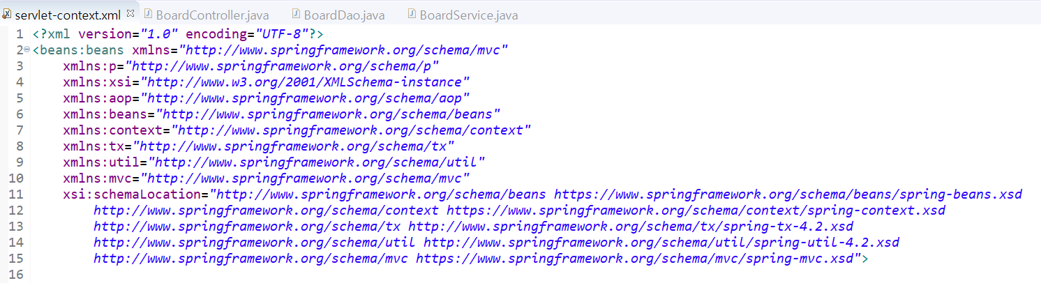 3) servlet-context.xml 에서 xmlns 도 확인했다. 도대체 무슨 문제일까....