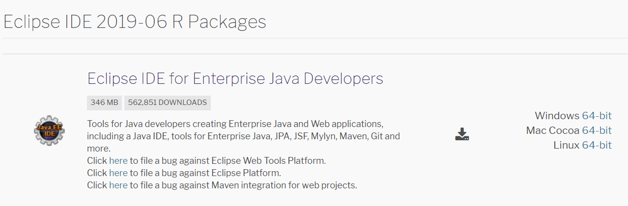 Download Packages > Eclipse IDE for Enterprise Java Developers > Windows 64-bit 를 다운로드 받았다.
