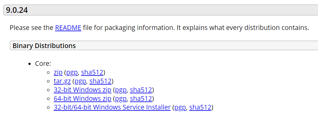 톰캣서버는 가장 최신버전인 9.0의 Windows 64bit 파일을 다운받았다.