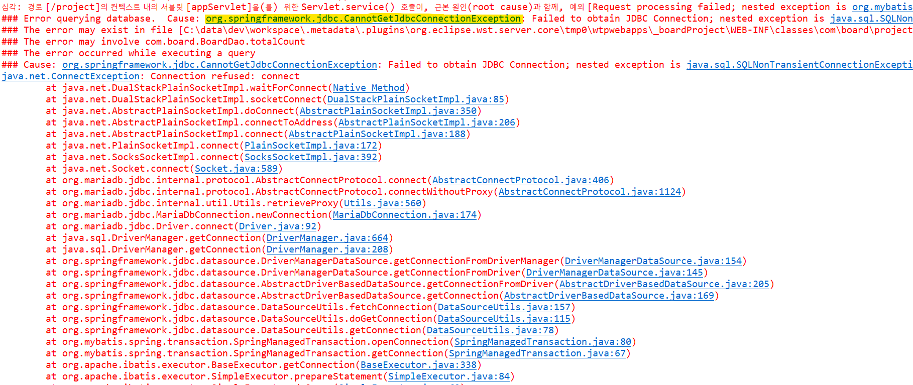1. org.springframework.jdbc.CannotGetJdbcConnectionException 에러