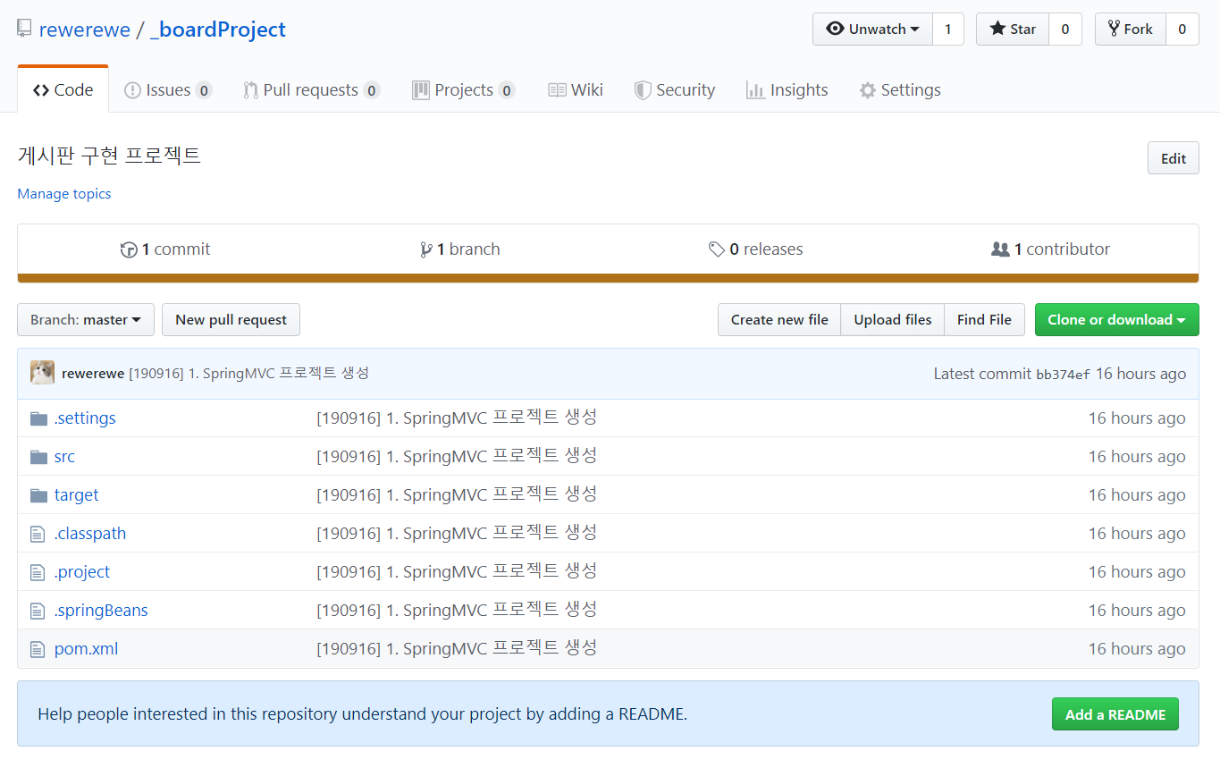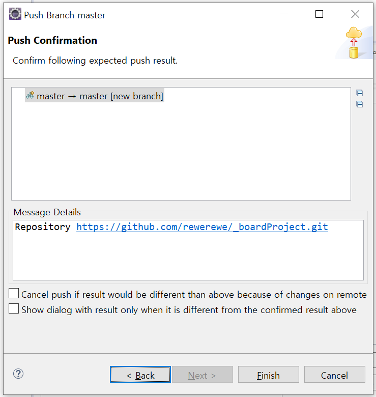 Eclipse 에서 작성한 commit 메시지로 프로젝트가 올라갔다!