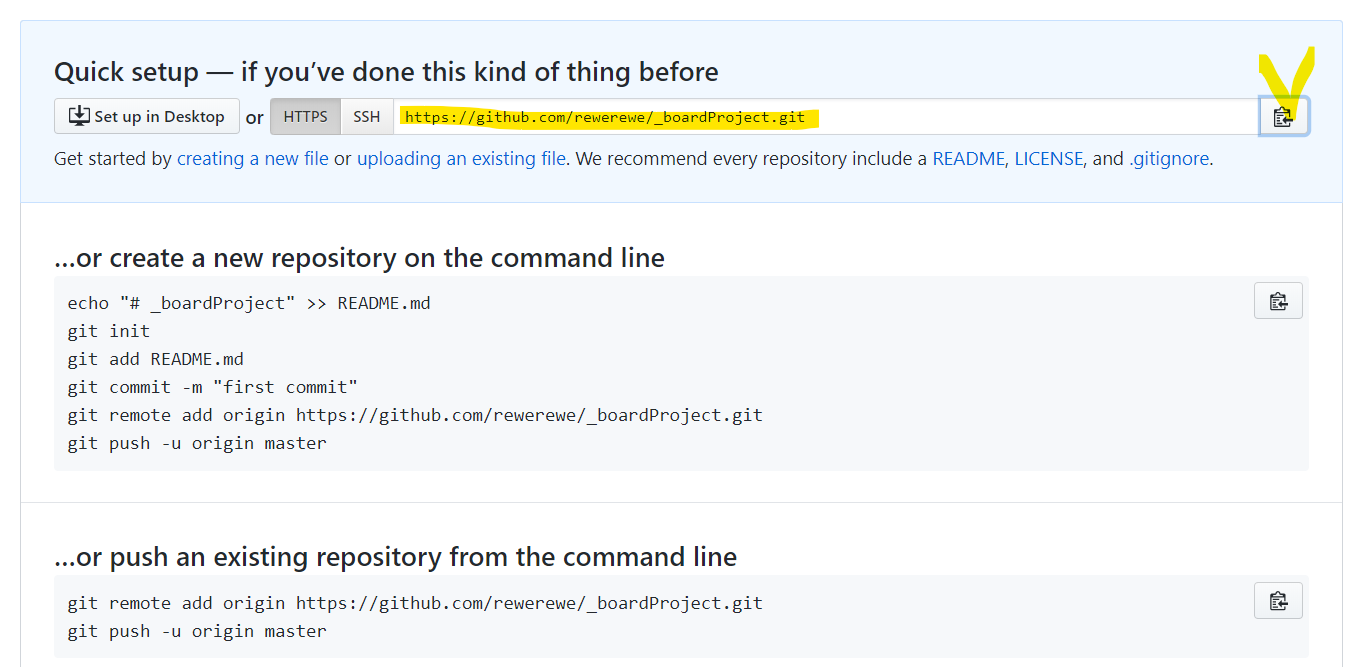 이때 github 생성한 저장소 URL 을 URI 에 붙여넣기 해주면 된다.