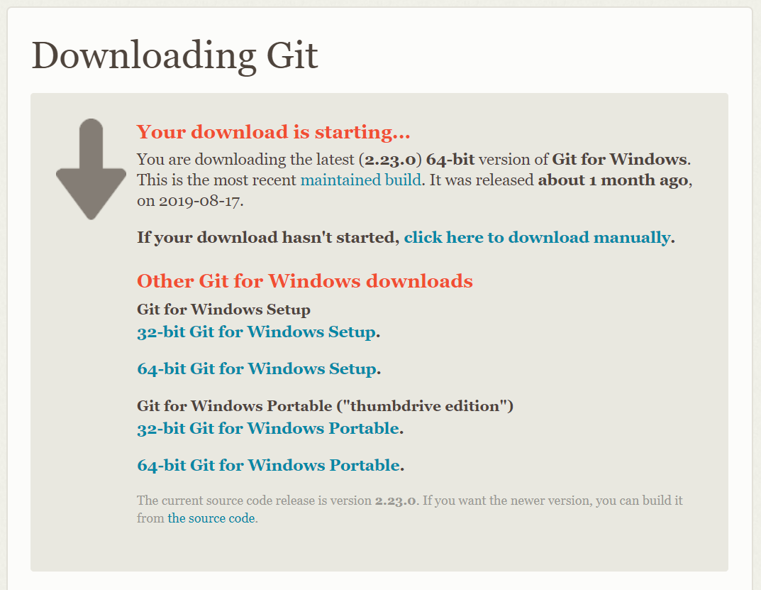 > Git 2.23.0v for Windows 64bit 자동다운로드