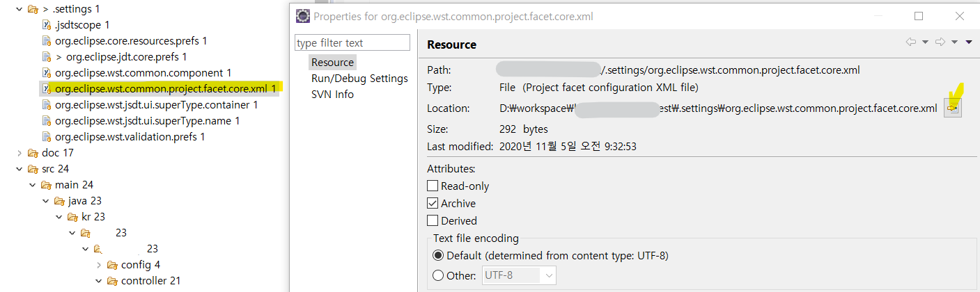 2. 프로퍼티 설정 파일이 있는 곳으로 직접 접근하여 jst.web 을 3.0 에서 2.5 로 변경
