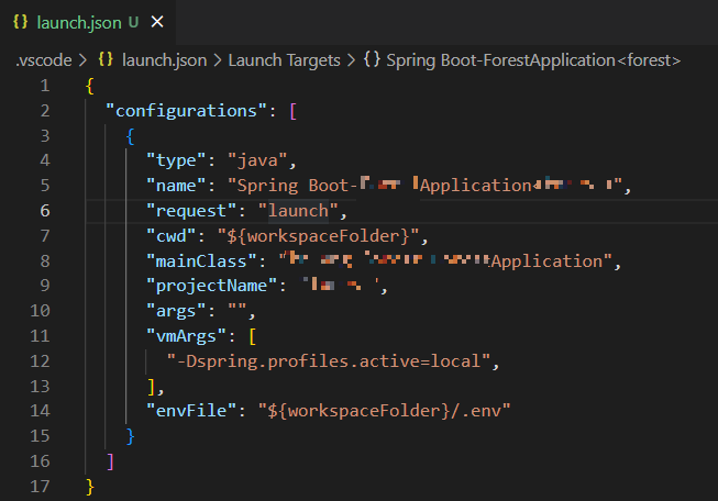 2) launch.json 파일 > configurations > 아래 vmArgs 구문 추가