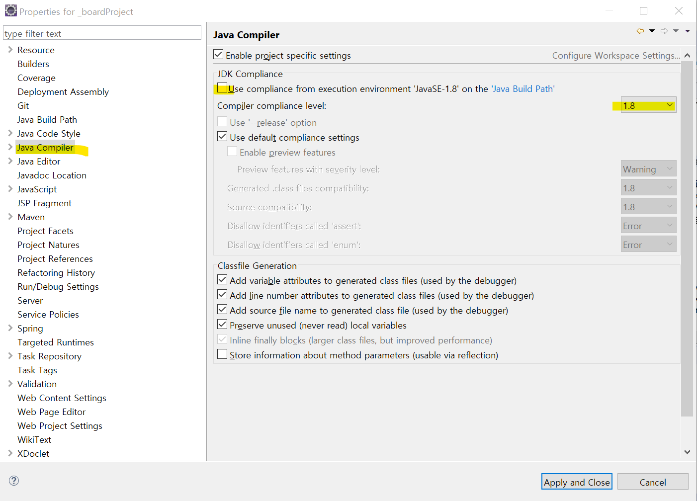 # 해결과정2. BuildPath에서 Complier, Server의 Java 버전 확인하기